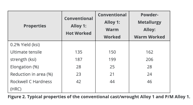 When manufactured to the same metallurgical condition (such as warm worked), the P/M alloy typically exhibits higher yield and ultimate tensile strength.
