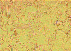 etchant HCL + H2O2 (3%); ASTM grain size 7.0; avg. grain area 2,000 µ2.