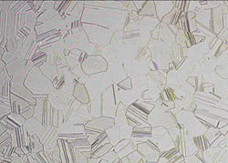 100x; etchant HCL + H2O2 (3%); ASTM grain size 4.5; avg. grain area 11,000 µ2.