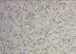 400x; etchant HCL + H2O2 (3%); uniform carbide precipitate.