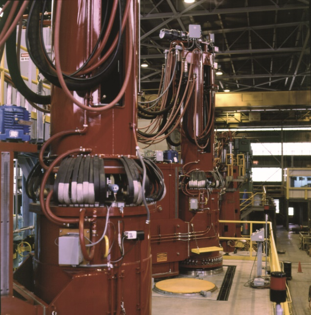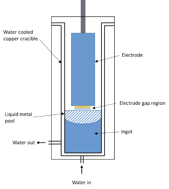 Remelting processes are secondary melting processes used when cleanliness and homogeneity requirements are beyond the capability of conventional production and casting processes. One such approach is vacuum arc remelting (VAR), where a starting electrode, cast from a prior production process, is gradually remelted under vacuum with heat supplied via an electric arc. The bottom of the electrode gradually melts and drips down to a molten pool, which continually solidifies, forming the final ingot. Figure 1 depicts a rough diagram and an image of VAR furnaces. There are three main parts to a VAR process: start-up, steady state, and hot top.