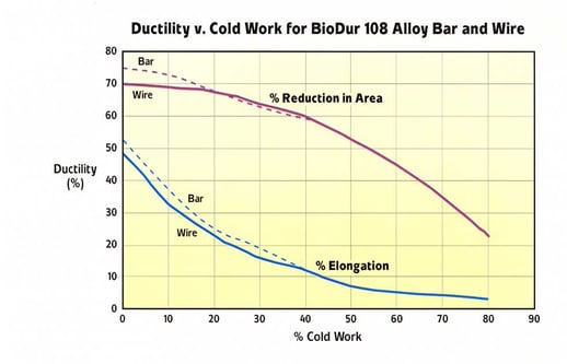 Figure 5b. BioDur® 108 Elongation/Reduction in Area with Increasing Cold Work