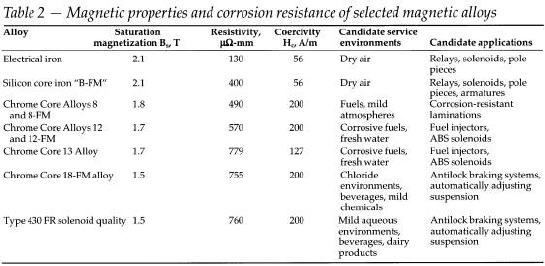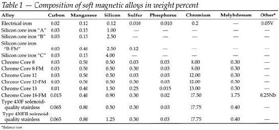 Four basic families of soft magnetic alloys offer various combinations of magnetic and mechanical properties. (Table 1) These include: