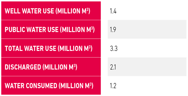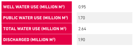 Water use and management is an important component of our manufacturing process, as water is used to cool material at specified rates.